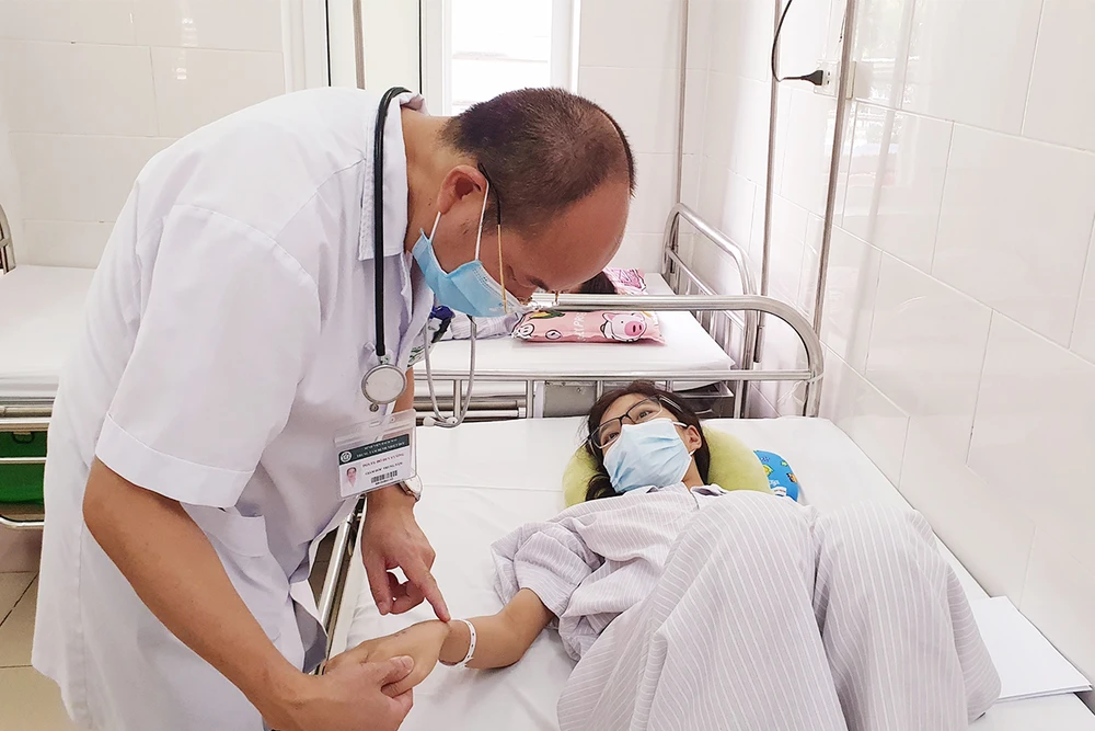 Điều trị bệnh nhân mắc sốt xuất huyết tại BV Bạch Mai. Ảnh: MAI THANH