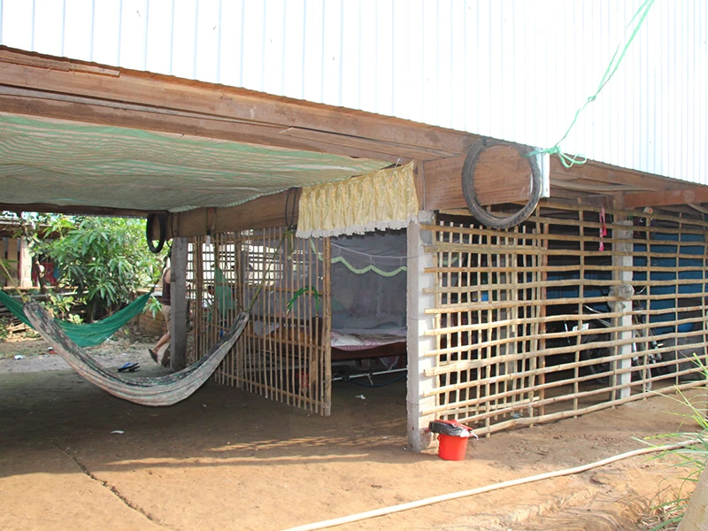 Mất nhà do sạt lở, người dân xã An Phong phải dọn vào sống dưới sàn nhà của hàng xóm. Ảnh: HẢI DƯƠNG