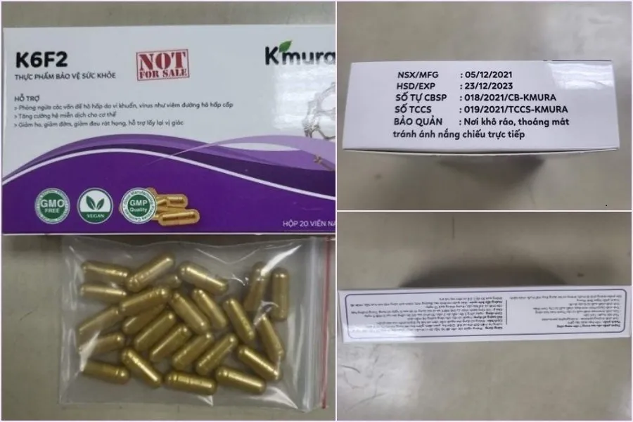 Trước đó, Cục nhận được phản ánh từ người tiêu dùng về sản phẩm nêu trên. Thông tin ghi trên hộp như sau: K6F2 -Thực phẩm bảo vệ sức khỏe- Kmuravir® đang được bán trao tay để phòng ngừa, điều trị sau mắc COVID-19.