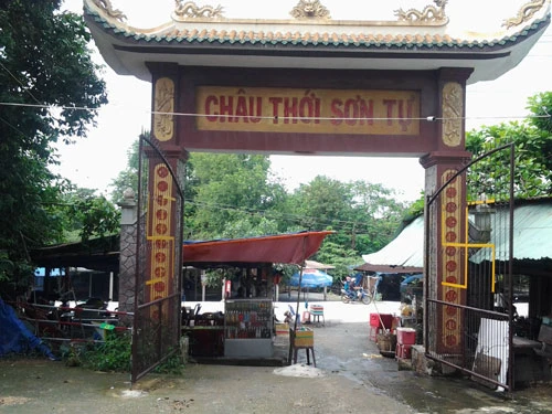 Trước cổng chính của chùa dưới chân núi Châu Thới có một hàng nước giải khát ngang nhiên chiếm dụng hết 1/2 đường lên chùa.