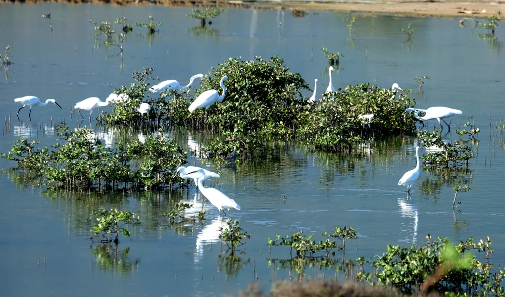 Đàn cò trắng ở cánh đồng muối Ninh Diêm.
