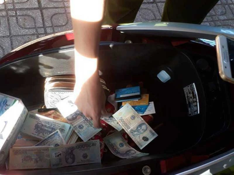 Lực lượng chức năng còn phát hiện nhiều tờ tiền cắt ghép từ tờ 20.000 đồng và 500.000 đồng khác được kẹp trong cọc tiền 500.000 đồng giấu trong cốp xe và ví cá nhân của đối tượng.