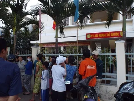 Người dân hiếu kỳ vây quanh trụ sở công an phường