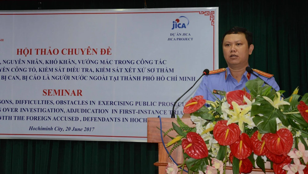 Ngày 20-6, VKS TP.HCM đã tổ chức Hội thảo thực trạng, nguyên nhân, khó khăn, vướng mắc trong công tác thực hành quyền công tố, kiểm sát điều tra, kiểm sát xét xử sơ thẩm hình sự các vụ án có bị can, bị cáo là người nước ngoài tại TP.HCM.