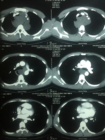 Chụp CT- Scan phát hiện bệnh nhân có khối u lớn ở vùng trung thất.