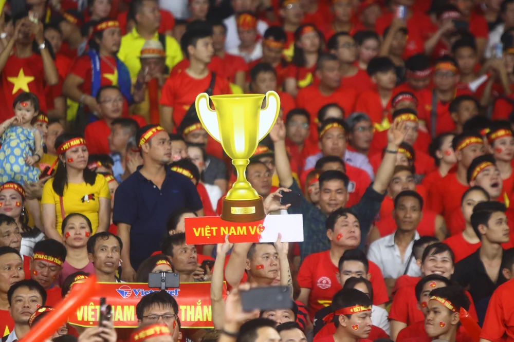 Cổ động viên Việt Nam khao khát thầy trò Park Hang-seo đoạt cúp vàng sau 10 năm. Ảnh: TRÂM ANH