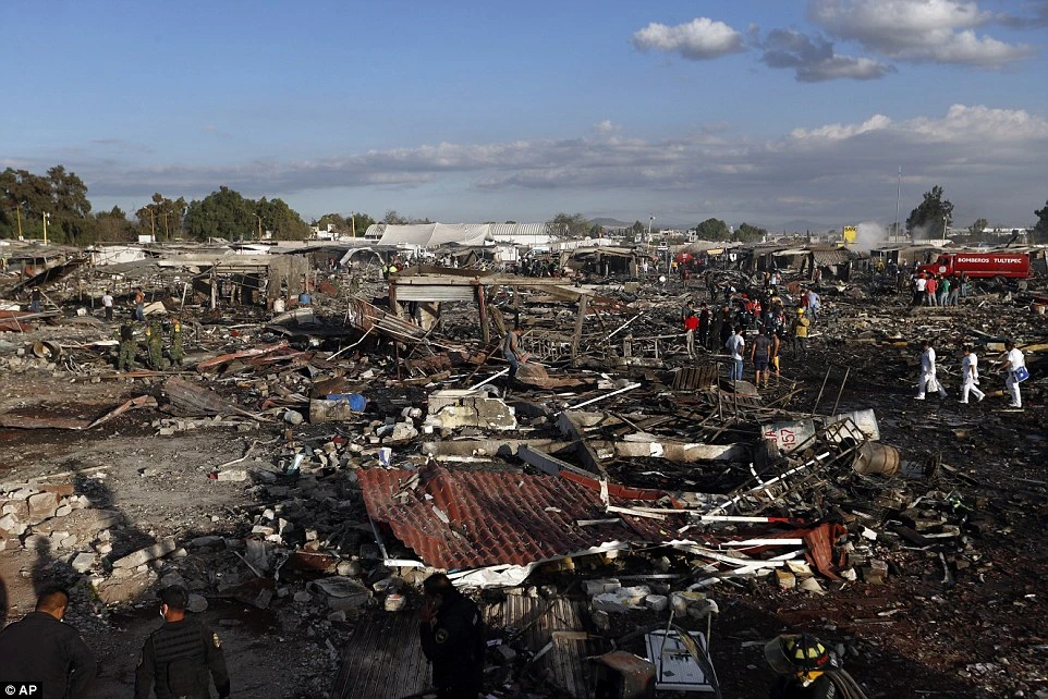 Đây là lần thứ ba khu chợ pháo hoa nổi tiếng ở Tultepec, cách thành phố Mexico 32 km, bị nổ trong hơn một thập kỷ.