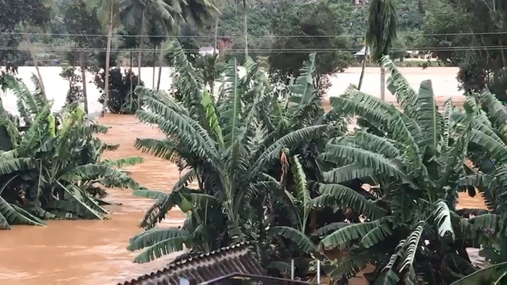 Mưa lớn khiến các huyện miền núi ở tỉnh Bình Định rơi vào tình trạng ngập nặng, giao thông bị chia cắt trong ngày 28-10.