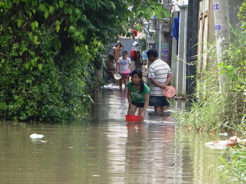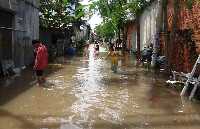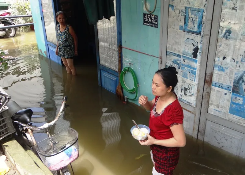 “Tôi ở đây bao nhiêu năm, chưa từng chứng kiến đợt ngập nào kinh khủng như thế này” - chị Tâm, nhà ở trong hẻm thuộc khu phố 5, phường Thạnh Xuân, phản ánh.