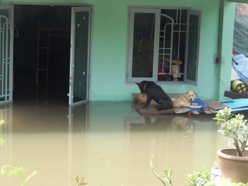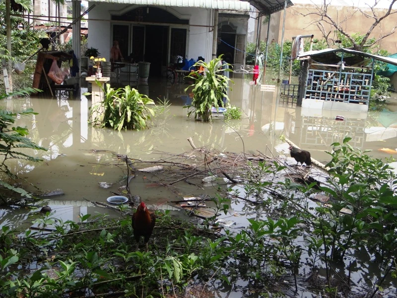 Một căn nhà ở trong hẻm nhỏ đường Hà Huy Giáp bị ngập sâu, gần như bị cô lập. Ảnh: K.B
