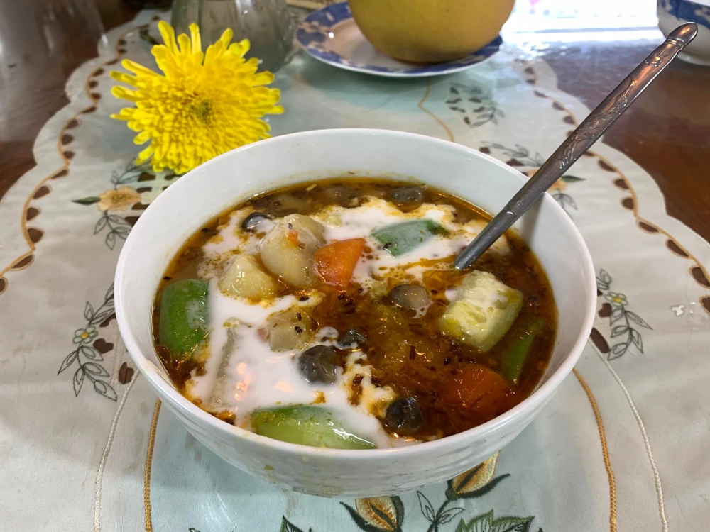 Tôi thì thích sự pha trộn của món canh hội nhiều vùng miền; có cả nước dừa miền trong điều hoà với tổng xen lẫn vị thơm đặc trưng của sả chiên giòn cháy thơm điều vị cho nồi canh hội mang hương sắc bốn miền.