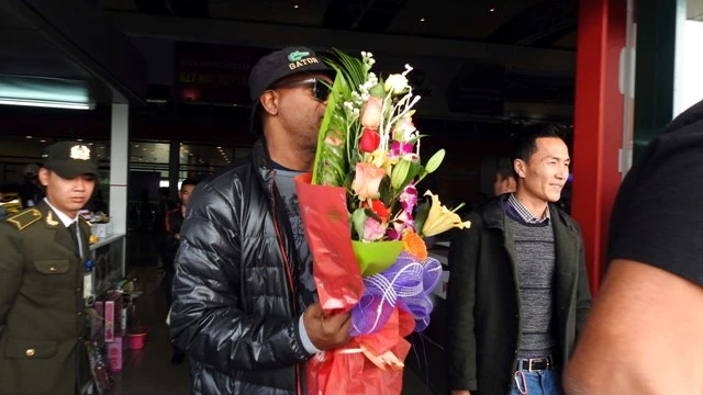Toom Hiddleston (ôm hoa) ngôi sao được chào đón nồng nhiệt, cười tươi rất tự tin.