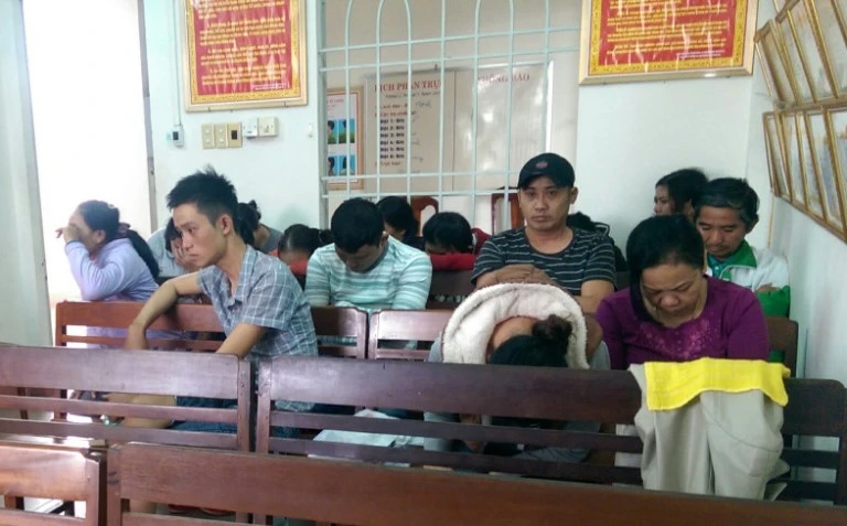 Những người tham gia đánh bạc tại cơ quan điều tra. Ảnh CQĐT