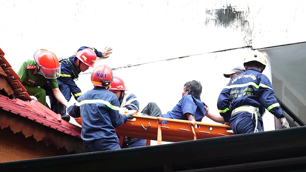 Nhận tin báo, Phòng PC07 đã điều động lực lượng xuống hiện trường, phối hợp với các đơn vị y tế leo lên mái nhà tiếp cận, cứu nạn nhân.
