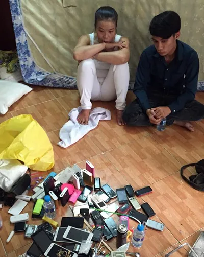 Riêng tại phòng 201, đôi nam nữ nhận là bà con có hơn 30 điện thoại, hơn chục dây chuyền bị đứt, lắc, nhẫn bông tai...