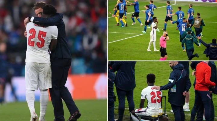 Saka đau buồn sau khi đá hỏng quả luân lưu 11 mét cho tuyển Anh. Ảnh: CGI.