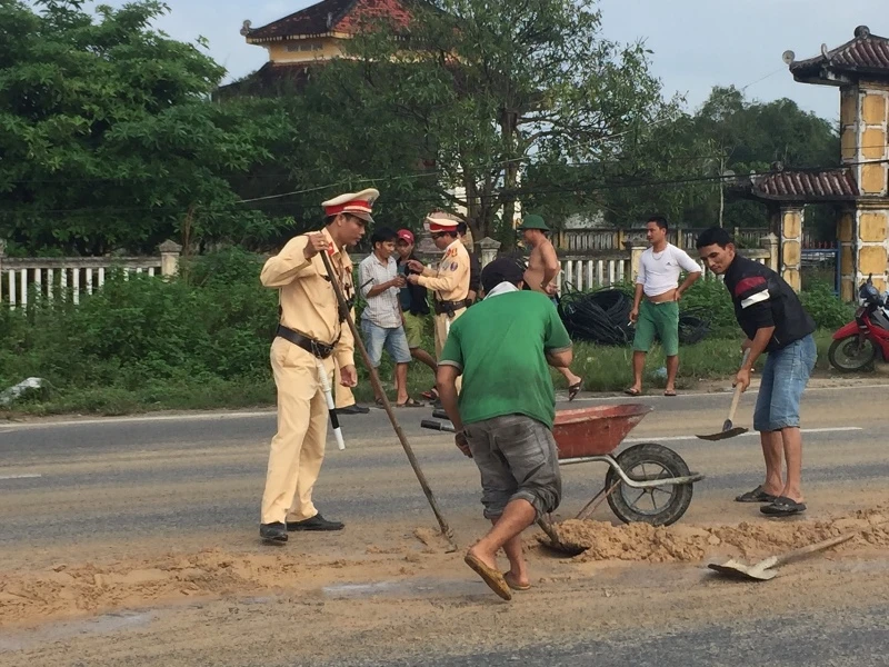 Ngay sau đó, lực lượng trạm đã nhanh chóng có mặt tại khu vực người dân trình báo để phân luồng giao thông, cùng người dân dọn chất thải đổ xuống đường để phương tiện an toàn khi lưu thông. Cùng với đó, lực lượng này nhanh chóng đuổi và bắt được xe tải nói trên.