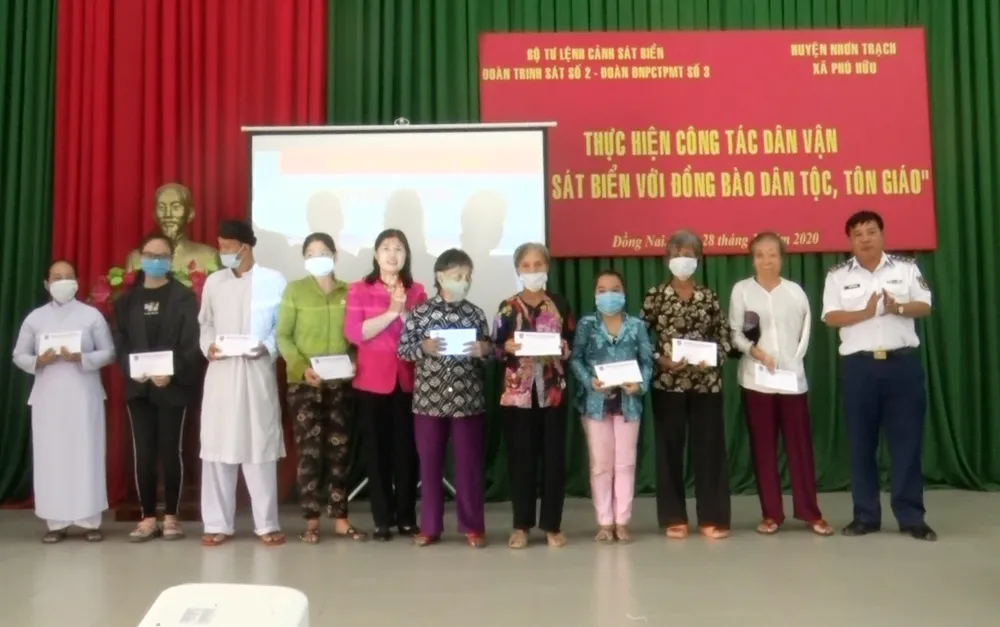 Nhân dịp này, lực lượng Cảnh sát biển cũng đã tặng quà cho nhiều bà con, các đối tượng chính sách, gia đình khó khăn, người nghèo thuộc các thành phần Tôn giáo trên địa bàn xã Phú Hữu.