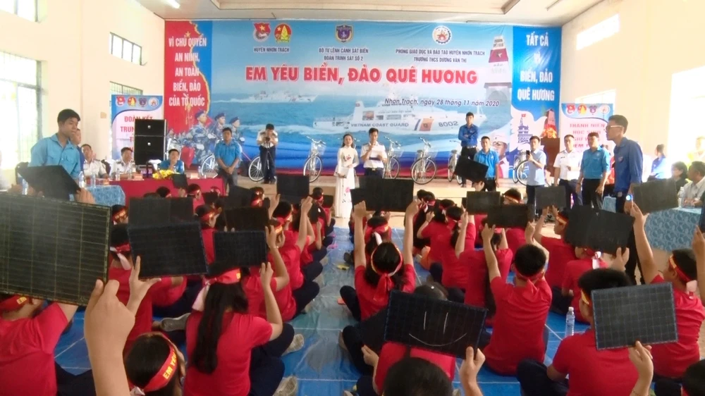 Ngày 28-11, Đoàn Trinh sát số 2 phối hợp với Đoàn Đặc nhiệm phòng chống tội phạm số 3, Bộ Tư lệnh Cảnh sát biển và huyện Đoàn Nhơn Trạch (Đồng Nai) cùng Trường Trung học cơ sở Dương Văn Thì tổ chức chương trình "Em yêu biển đảo quê hương”.