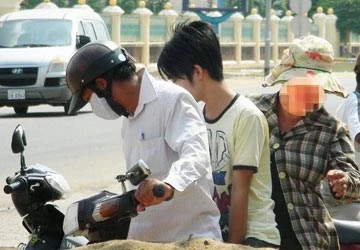 Một con bạc được mẹ áp tải ra khỏi casino ở Campuchia sau khi nộp tiền chuộc. Ảnh tư liệu.