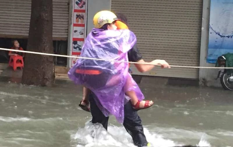 Bên đường Nguyễn Tài (TP Vinh), nhà dân bị ngập nặng. Trong đó căn nhà cấp bốn có hai mẹ con đang bị cô lập hoàn toàn. Nước dâng mỗi lúc một cao lên. Người mẹ không biết bơi, còn con nhỏ mới 18 tháng tuổi. Người dân xung quanh đã di tản, không còn ai để giúp đỡ. Người mẹ đã bồng con lên ngồi trên nóc tủ tránh nước và điện cầu cứu.