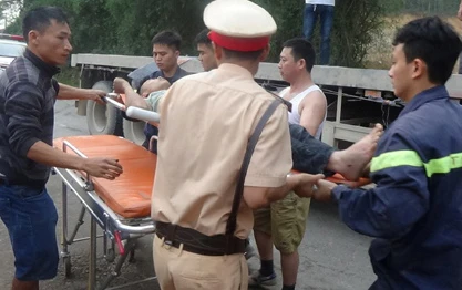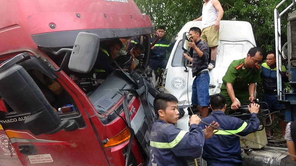 Cú đâm quá mạnh khiến cabin xe đầu kéo bẹp dúm, tài xế Trần Thế Hoàng (29 tuổi, trú xóm 10, xã Văn Sơn, huyện Đô Lương, Nghệ An) bị thương mắc kẹt trong đống đổ nát của cabin. Hai xe hư hỏng nặng.