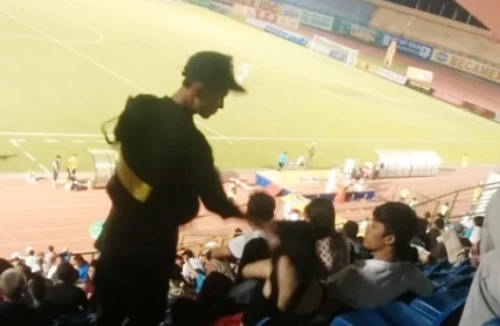 Khi bị tát, nữ cổ động viên không kịp phản ứng gì. Một cảnh sát cơ động khác đứng ngay gần đó đã tiến tới ngăn cản. Những khán giả xung quanh cũng không hiểu chuyện gì đang xảy ra.