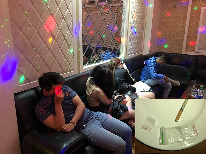 Cảnh sát phát hiện hàng chục người chơi ma túy trong quán karaoke. Ảnh: HT
