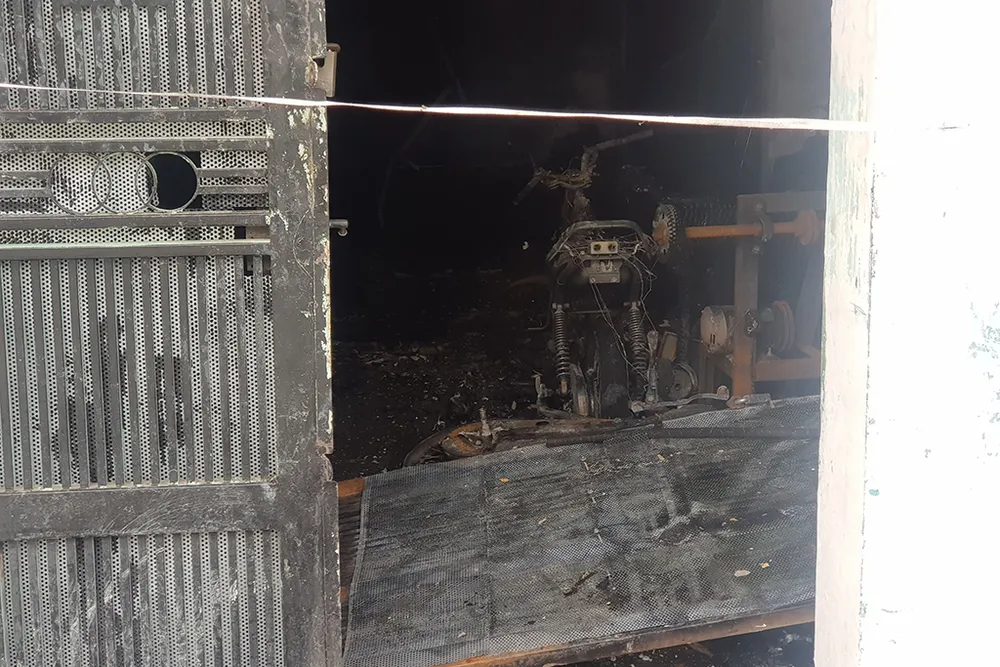 Vụ hỏa hoạn còn thiêu rụi nhiều tài sản tại căn nhà, trong đó có hai xe gắn máy để bên dưới.