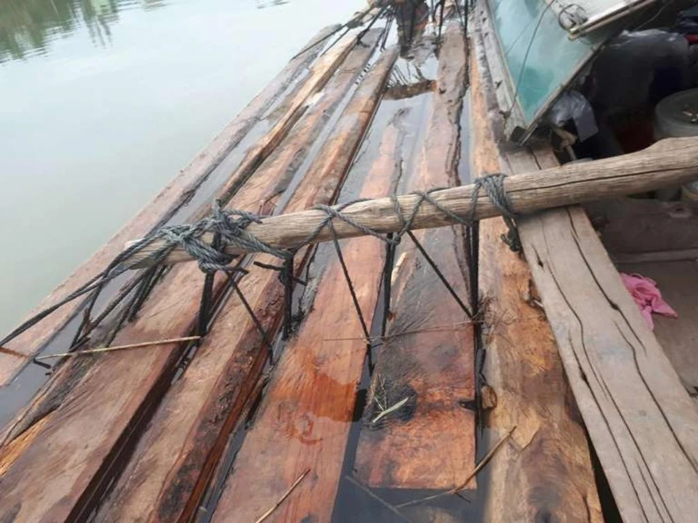 Nhóm chở gỗ lậu bỏ ghe thoát thân.