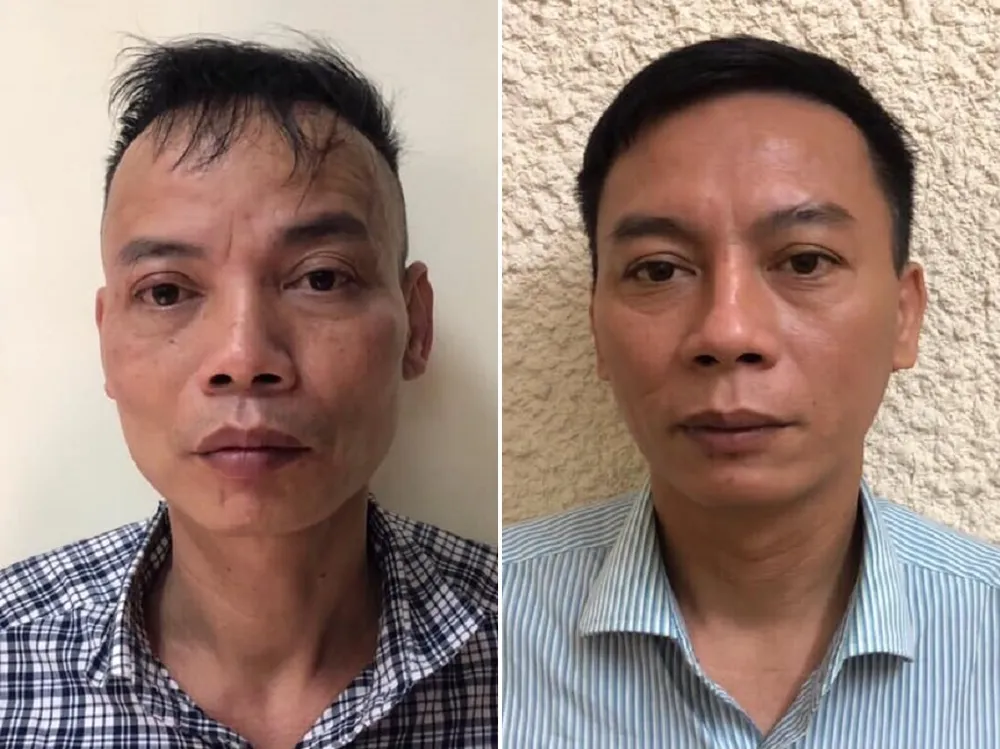 Đào Đức Thắng và Đào Đức Tân tại cơ quan công an. Ảnh: CACC
