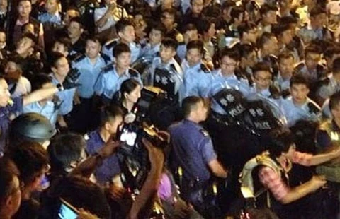 Báo South China Morning Post (Hong Kong) cho biết xô xát đã xảy ra (ảnh) và khiến bốn cảnh sát bị thương. 45 người biểu tình bị bắt giữ về tội tụ tập trái phép và cản trở người thi hành công vụ.