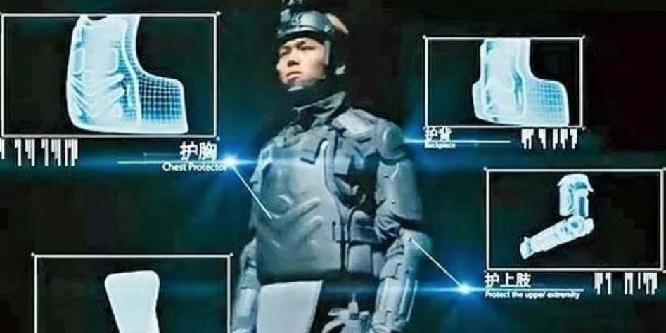 Bộ giáp có thiết kế tương đối giống nhân vật RoboCop trong bộ phim viễn tưởng của Mỹ ra mắt năm 1987, với các tấm bảo vệ cơ thể và tay chân của người mang. Bộ giáp sẽ sớm xuất hiện trong tình hình căng thẳng ở Hong Kong tiếp tục leo thang.