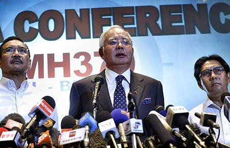 Ông Najib Razak nói tín hiệu cuối cùng giữa máy bay và vệ tinh được ghi nhận là lúc 8 giờ 11 phút sáng 8-3. Đội điều tra quốc tế đã đưa ra hai giả thiết về vị trí máy bay lúc đó: