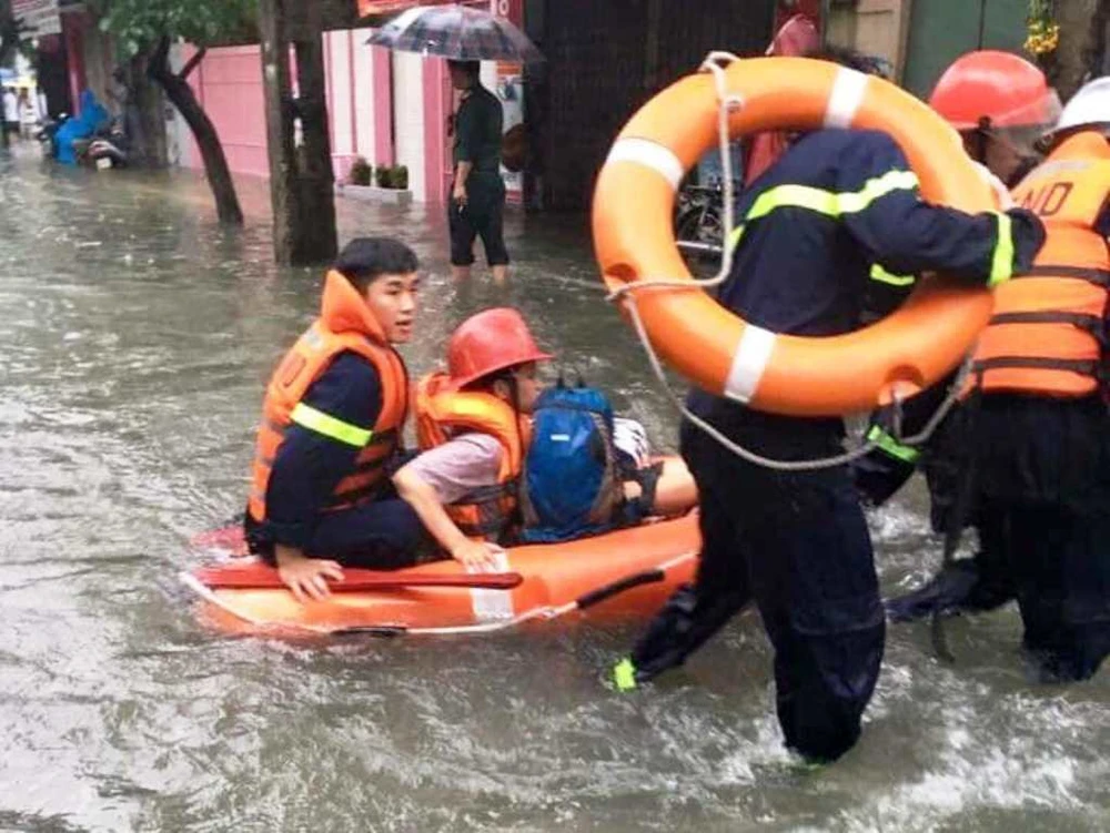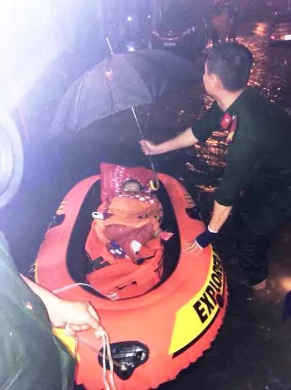 Đội Cảnh sát PCCC Công an quận Thanh Khê đã phối hợp với người dân đến ứng cứu. Xuồng cao su, chậu nhựa được sử dụng đề đưa các nạn nhân ra ngoài.