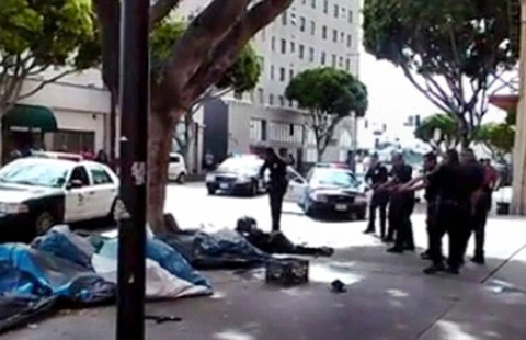 Hình ảnh trong băng video cho thấy ban đầu một người đàn ông vô gia cư cãi nhau với thái độ rất tức giận với một nhóm cảnh sát. Các cảnh sát đã tìm cách khống chế. Có tiếng hô “Bỏ súng xuống” rồi nhiều tiếng súng vang lên. Sau đó những người đi đường đã gọi cấp cứu (ảnh). Nạn nhân được đưa đi cấp cứu nhưng đã chết trong bệnh viện. Đoạn băng video cũng cho thấy cảnh sát đã khống chế một phụ nữ khi người này định nhặt cây ma trắc của cảnh sát rơi dưới đất để chống đỡ cảnh sát.