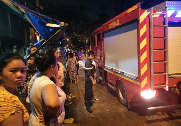 Cảnh sát 113, công an phường và xe chữa cháy của Phòng Cảnh sát PCCC quận 8 đang bao vây hiện trường. Ảnh: Ngôi sao.