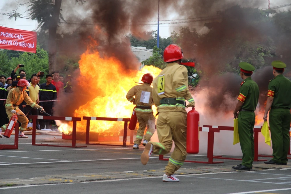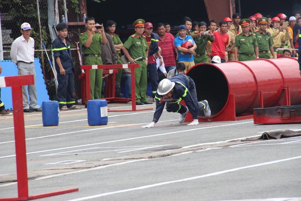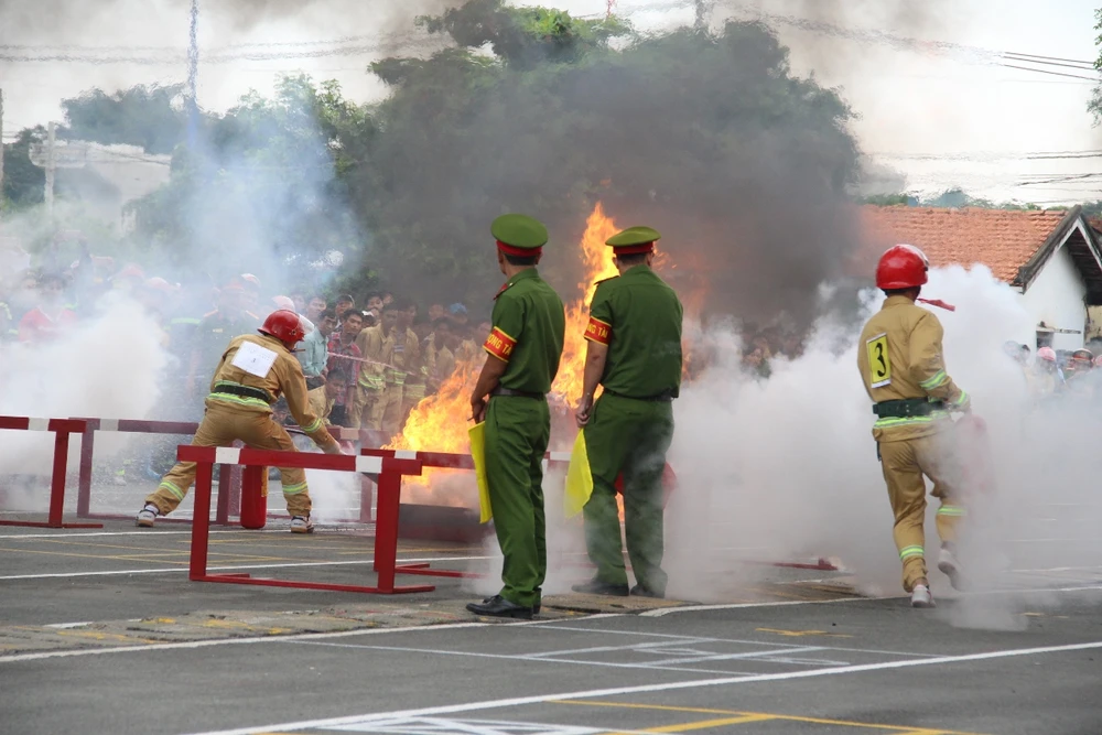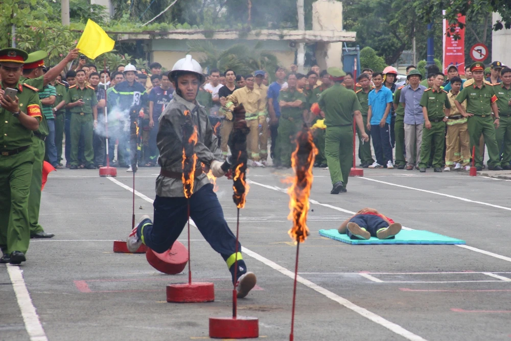 Hội thao kỹ thuật chữa cháy và cứu nạn cứu hộ. Ảnh: NGUYỄN TRÀ
