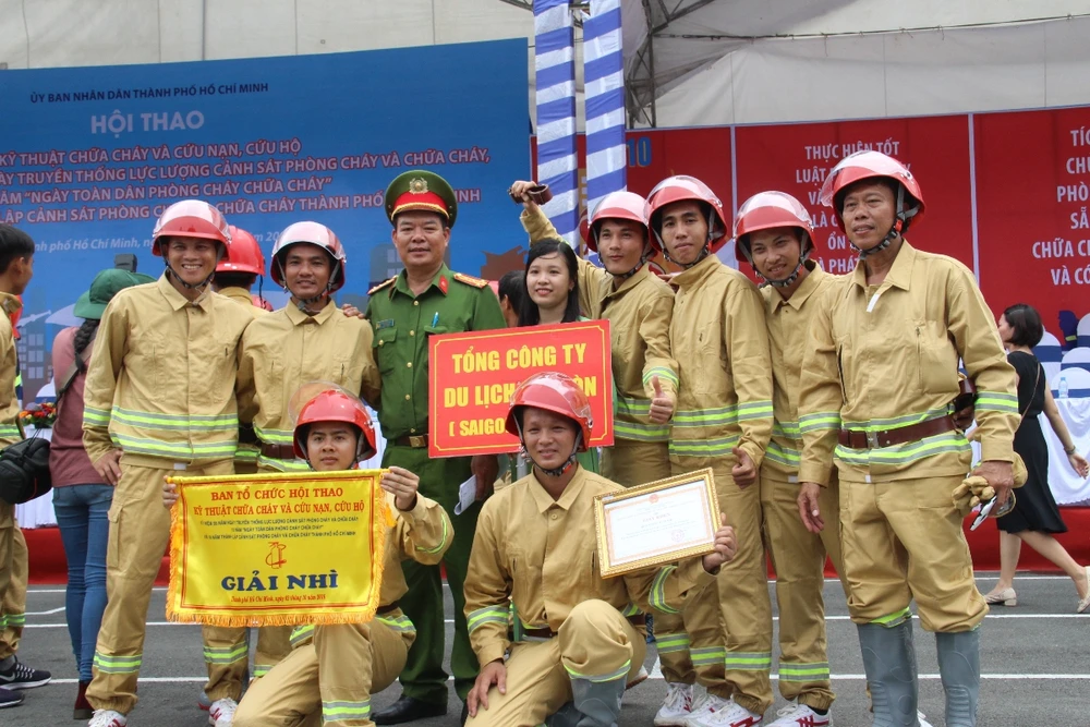 Niềm vui của đội phòng cháy cơ sở Tổng Công ty Du lịch Sài Gòn. Ảnh: NGUYỄN TRÀ