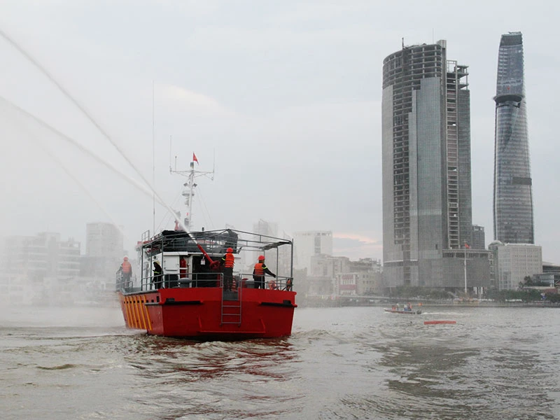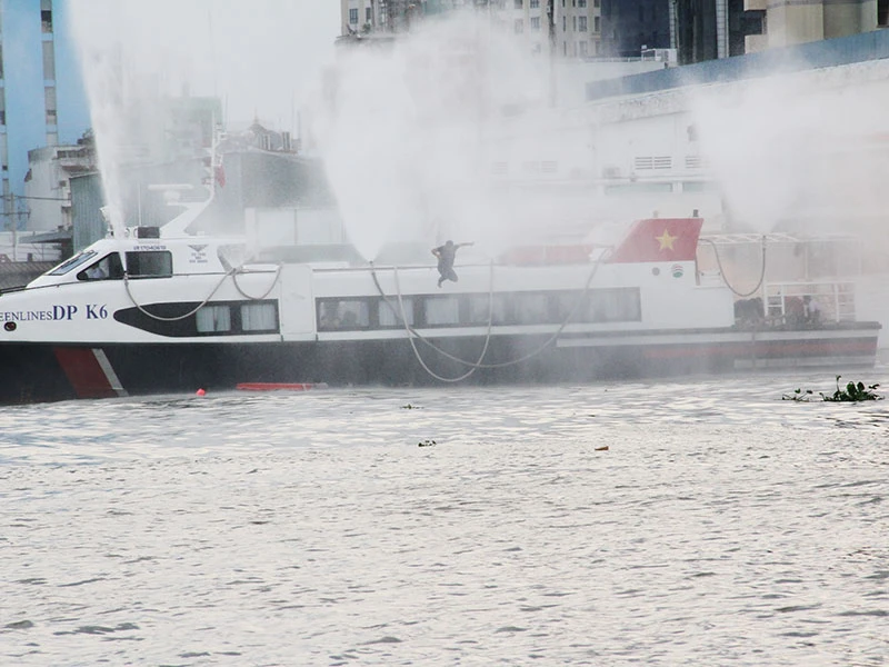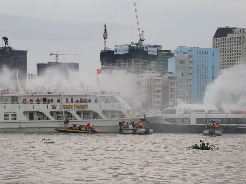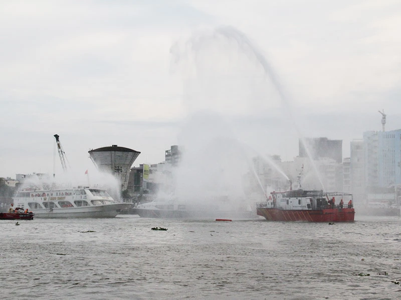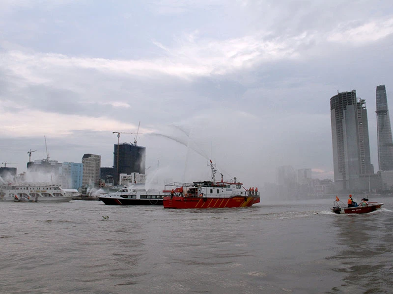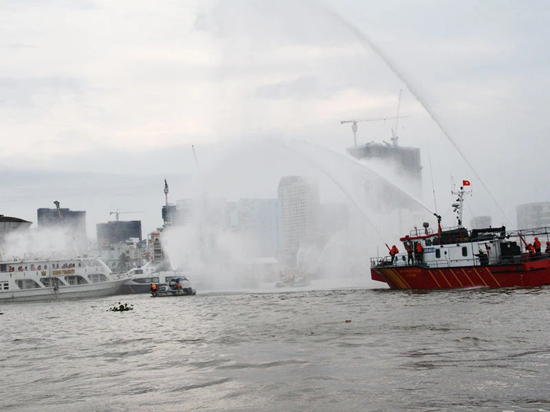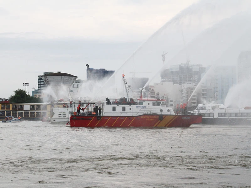 Chiều ngày 18-5, Cảnh sát PC&CC Thành phố phối hợp với các bên liên quan tổ chức diễn tập công tác ứng phó khi xảy ra cháy, nổ tàu chở khách trên sông Sài Gòn.
