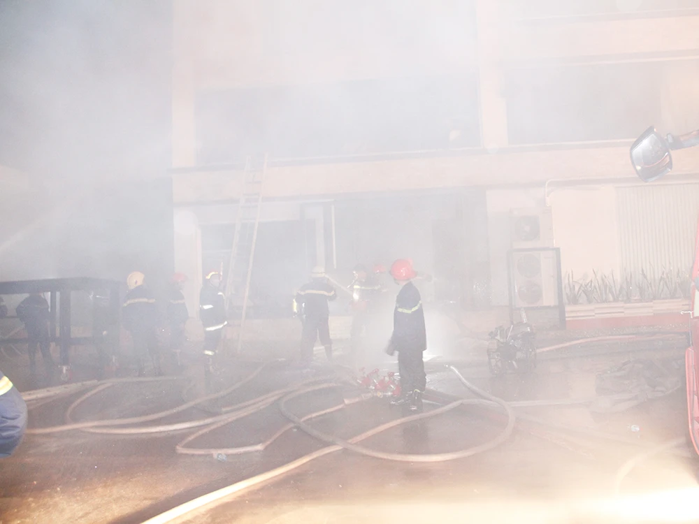 Khu vực gần các cửa ra vào khói mịt mù dù hỏa hoạn cơ bản đã được khống chế. Ảnh: Nguyễn Tân