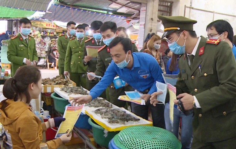 Trong những ngày qua, Công an TP Thanh Hóa và Thành đoàn TP Thanh Hóa đã phát khẩu trang y tế miễn phí cho người dân tại chợ Điện Biên và siêu thị CoopMart…