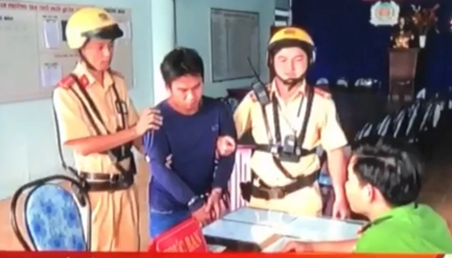 Cảnh sát đưa Phạm Hồng Phong về trụ sở công an làm việc. Ảnh: CA
