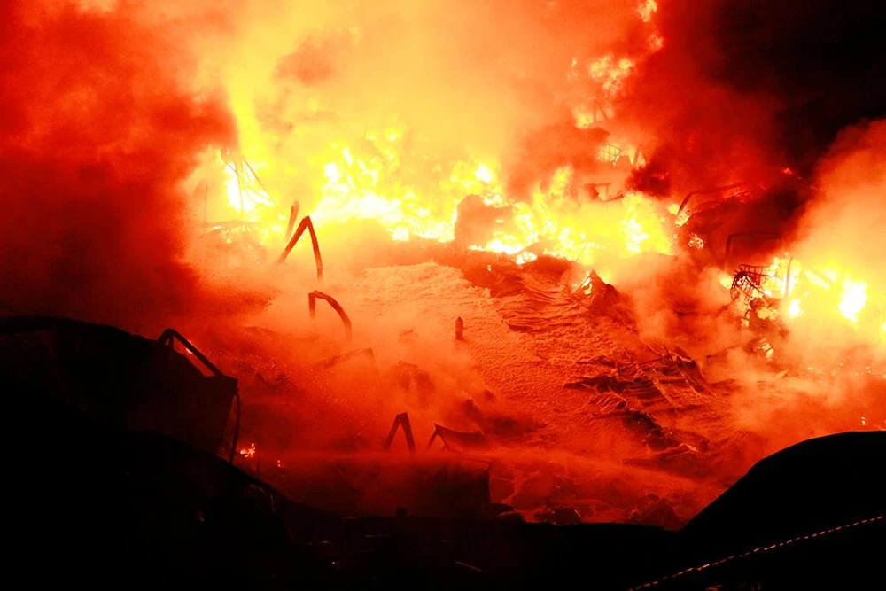 Hỏa hoạn thiêu rụi toàn bộ khu vực nhà kho. Ảnh: NT.