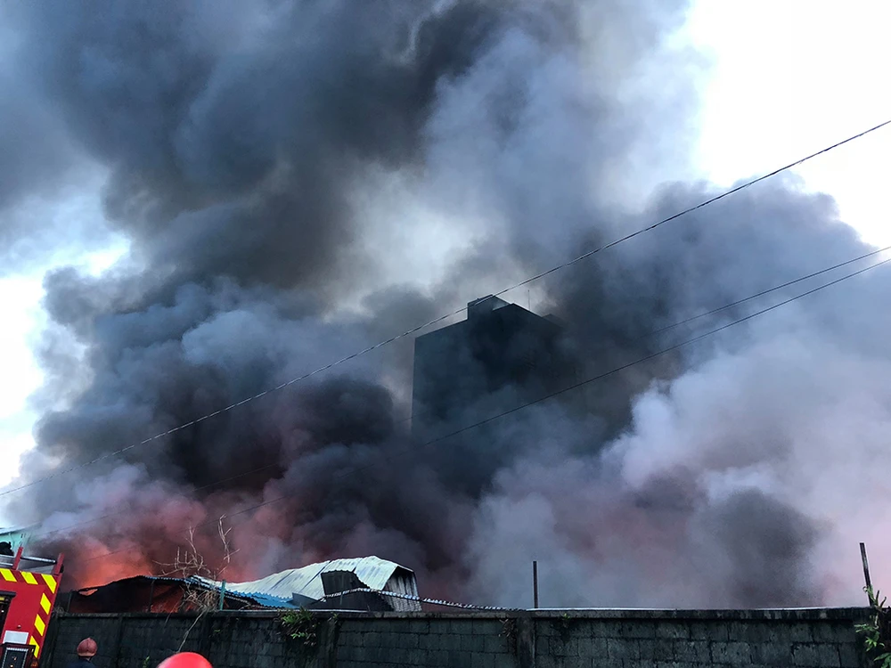 Cột khói từ đám cháy bốc cao hàng trăm mét đứng từ rất xa vẫn có thể nhìn thấy.
