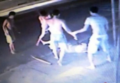 Camera an ninh quay lại được cảnh nhóm người ở phường Quỳnh Thiện đã đánh nạn nhân tử vong.