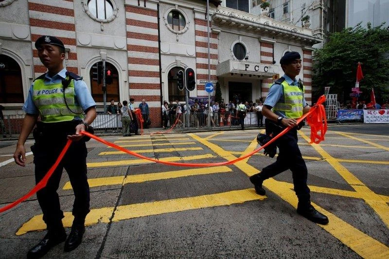 Cảnh sát Trung Quốc điều khiển giao thông bên ngoài một con đường ở Trung Quốc. Ảnh: REUTERS