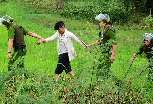 Sáng 24-11, gần chục Cảnh sát 113 công an TP. Quảng Ngãi đến khu vực sông Kênh thuộc địa phận phường Trương Quang Trọng, thuyết phục, đưa Lê Quốc Cường (23 tuổi, ngụ xã Nghĩa Kỳ, huyện Tư Nghĩa) đang trốn trong đám lục bình dưới sông về trụ sở làm việc.