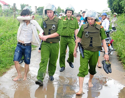 CS đưa nam thanh niên về trụ sở làm việc. Ảnh: TR.Thu