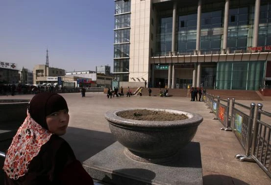 Một người phụ nữ người Duy Ngô Nhĩ ở nhà ga Tân Cương. Ảnh: Reuters